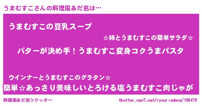 | 可愛いあだ名 | 『うまちゅっちゅ』『うっまぃー』 |