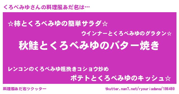 | 意味不明あだ名 | 『永久保存くろべみゆ』『自称くろべみゆ』 |