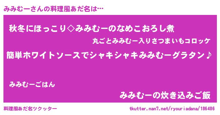 | 男性向けラノベタイトル風あだ名 | 『みみむーの嫁は女の子じゃないと思った?』 |