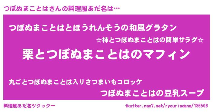 | 意味不明あだ名 | 『なめこ科つぼぬまことは属』 |