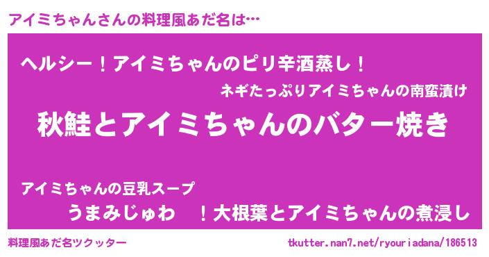 | ヘコむあだ名 | 『アイミちゃん(遠い目)』『なまこ酢』 |