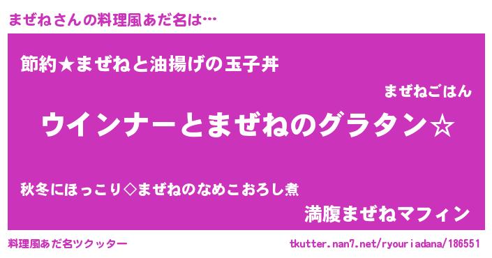 | ヘコむあだ名 | 『なまこ酢』『まぜにー』『まぜを』 |