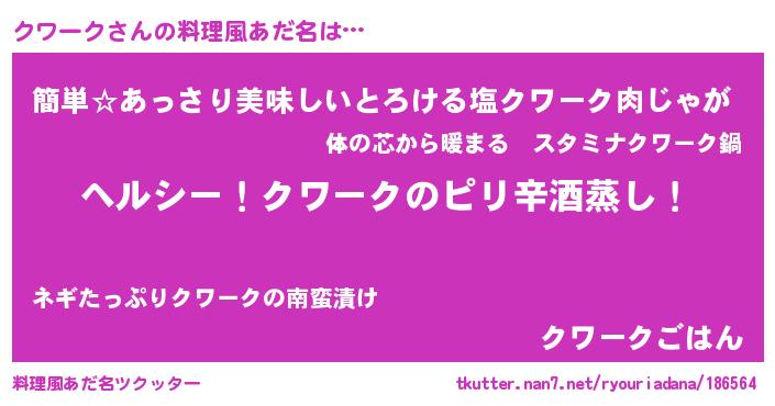 | 女子向けラノベタイトル風あだ名 | 『闇のクワーク』『クワークの雑貨屋さん』 |