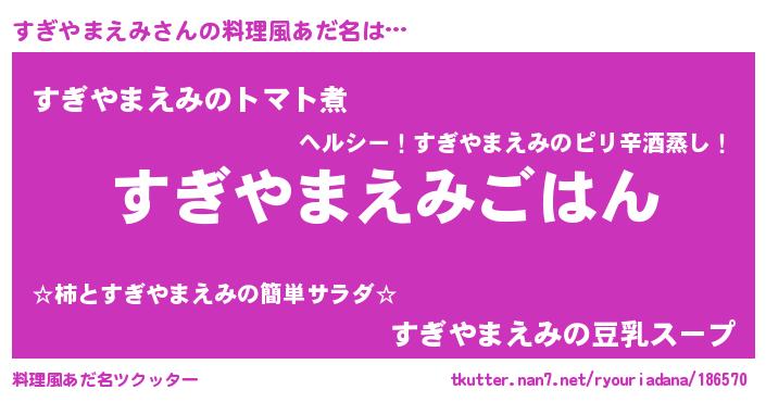 | 肩書あだ名 | 『すぎやまえみ少佐』『すぎやまえみ総統』 |