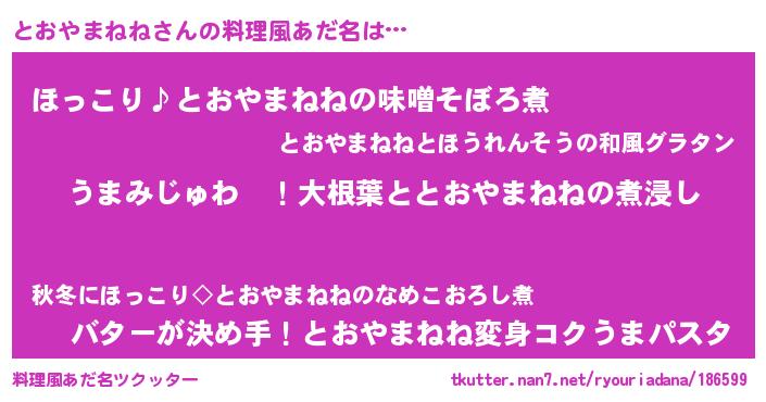 | 意味不明あだ名 | 『とおやまねねフォーエバー』 |