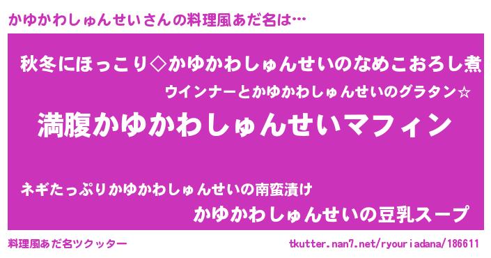 | ヘコむあだ名 | 『かゆかわしゅんせい(遠い目)』『かゆお』 |