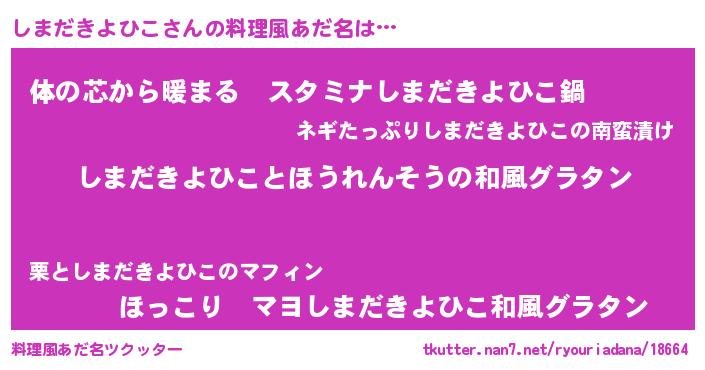 | ヘコむあだ名 | 『酢こんぶ』『しまっふぃ~』 |