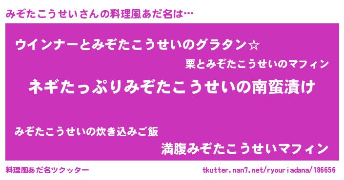 | ヒーロー風カッコイイあだ名 | 『スーパーミゾタコウセイ』 |