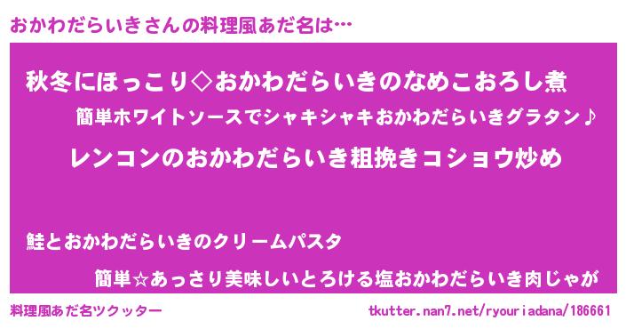 | 意味不明あだ名 | 『自称おかわだらいき』 |