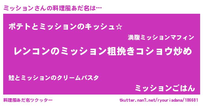 | 意味不明あだ名 | 『自称ミッション』『永久保存ミッション』 |