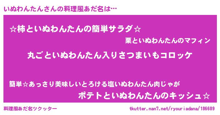 | 意味不明あだ名 | 『住所不定無職いぬわんたん(7歳)』 |