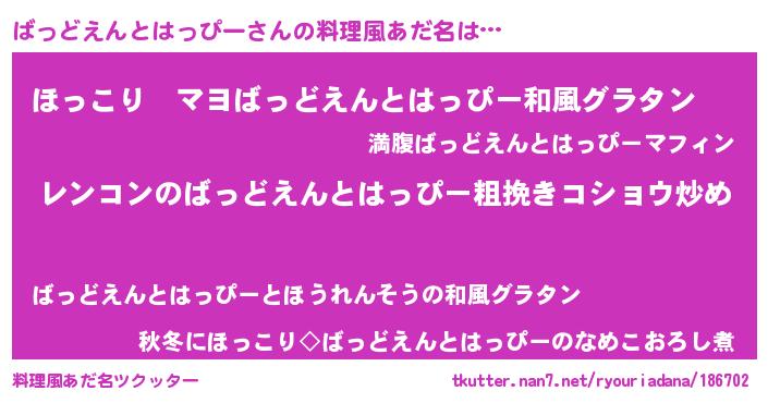 | 意味不明あだ名 | 『自称ばっどえんとはっぴー』 |