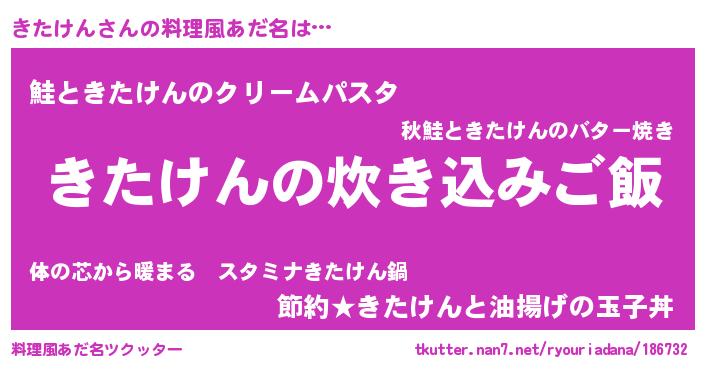 | 男性向けラノベタイトル風あだ名 | 『うちのきたけんが世界を掌握している!』 |