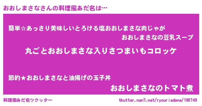 | 意味不明あだ名 | 『住所不定無職おおしまさな(95歳)』 |