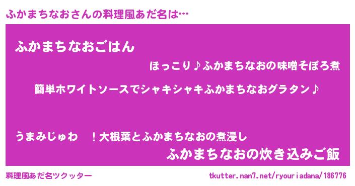 | ポケモン風あだ名 | 『ヒフカマチナオ』『フカキング』 |