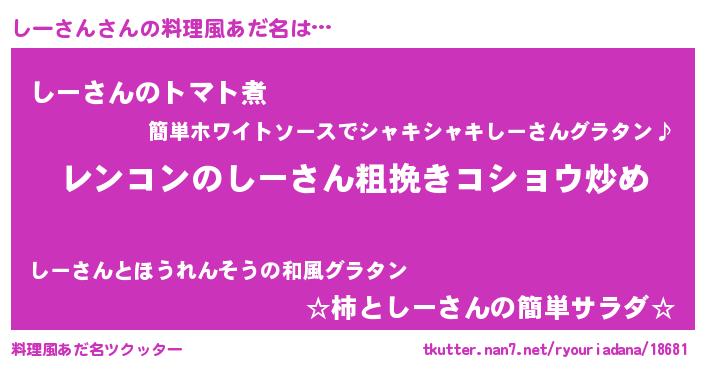| ピコ太郎風あだ名 | 『シシ太郎』『シー三郎』『ピシ六郎』 |