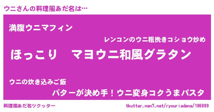 | 男性向けラノベタイトル風あだ名 | 『この素晴らしい世界にウニを!』 |