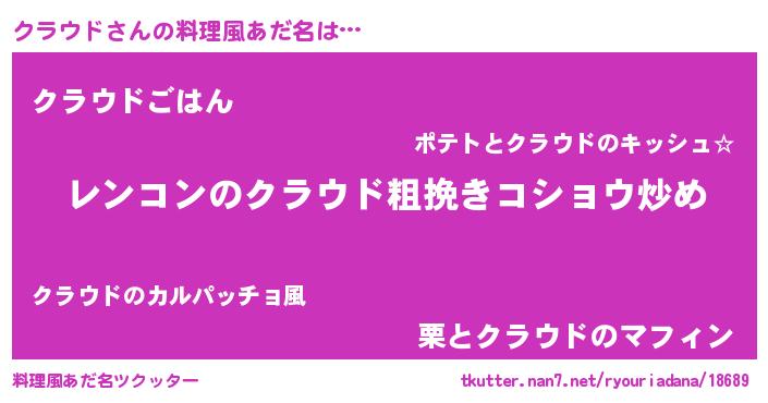 | 意味不明あだ名 | 『自称クラウド』『エリンギ科クラウド属』 |