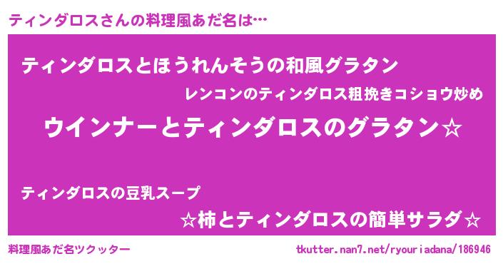 | 意味不明あだ名 | 『ティンダロスフォーエバー』 |