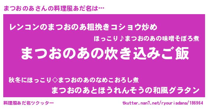 | 胡散臭い通販商品みたいなあだ名 | 『テレビで話題の高麗人参…その名も「まつおのあ」』 |