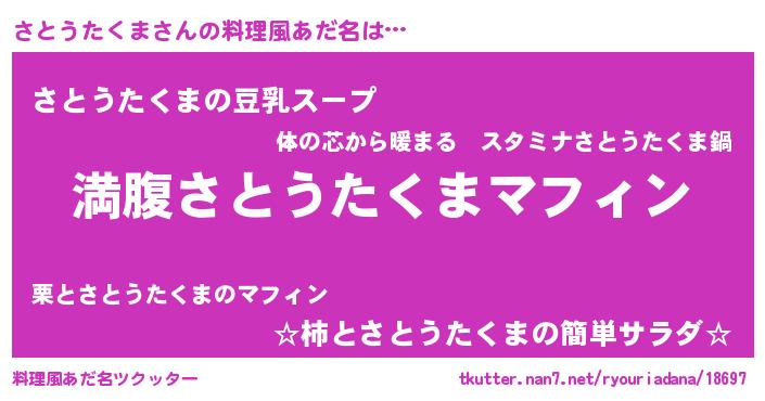 | 胡散臭い通販商品みたいなあだ名 | 『絶対に幸福をもたらす水素水…その名も「さとうたくま」』 |
