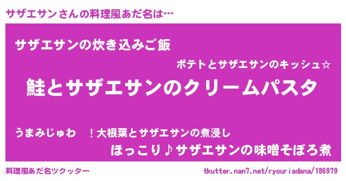 | 男性向けラノベタイトル風あだ名 | 『ノーゲーム・ノーサザエサン』 |