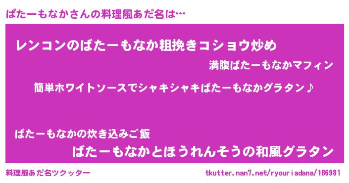 | ヘコむあだ名 | 『ばたっちょ』『ばたーもなか(遠い目)』 |