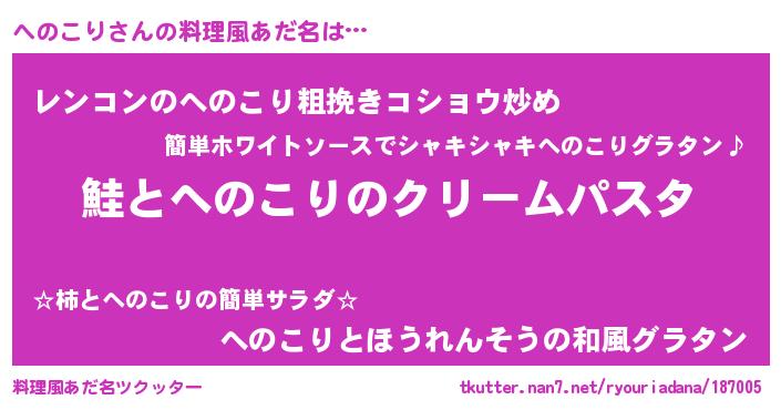 | ピコ太郎風あだ名 | 『ヘヘ太郎』『ヘノ六郎』『ヘコ三郎』 |