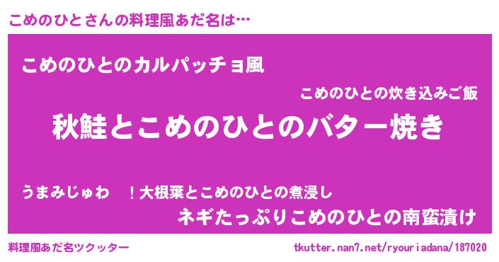 | 意味不明あだ名 | 『永久保存こめのひと』 |