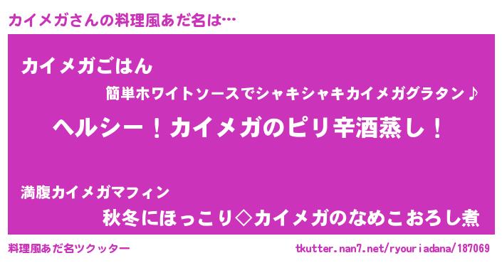 | 意味不明あだ名 | 『自称カイメガ』『たけのこ科カイメガ属』 |