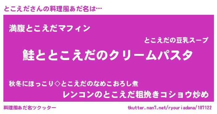 | ヘコむあだ名 | 『とこえだ(爆)』『とこ太郎』『豆乳』 |