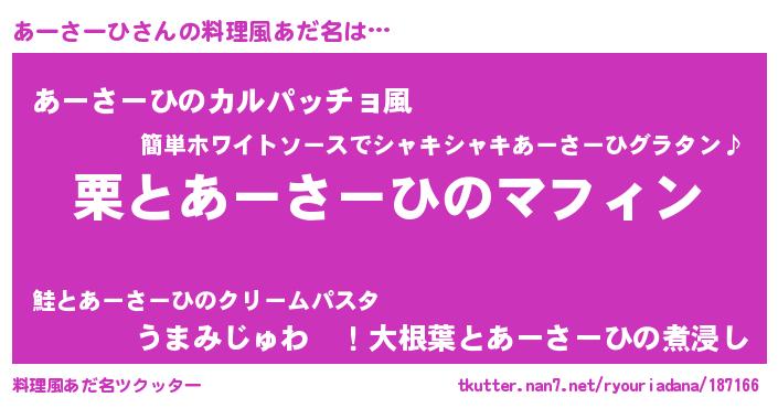 | 意味不明あだ名 | 『住所不定無職あーさーひ(9歳)』 |