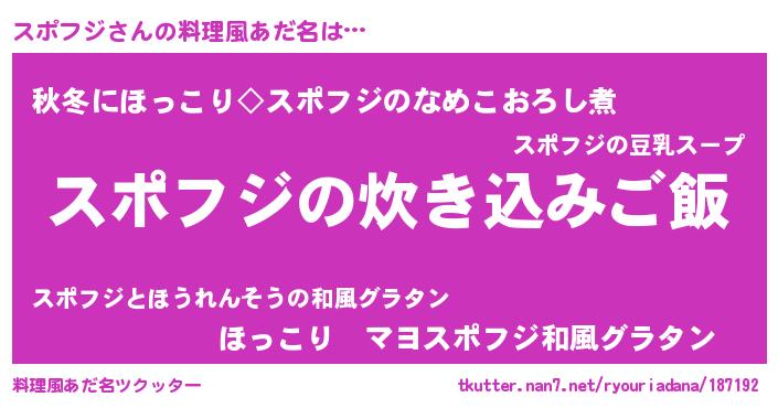 | 胡散臭い通販商品みたいなあだ名 | 『あなたにだけ特別に提供する世界で10本だけ現存している希少なブランデー…その名も「スポフジ」』 |