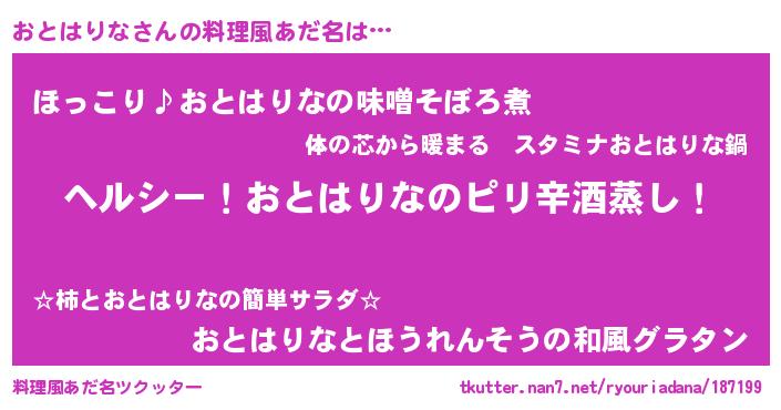 | 意味不明あだ名 | 『自称おとはりな』『ペロリンおとはりな』 |
