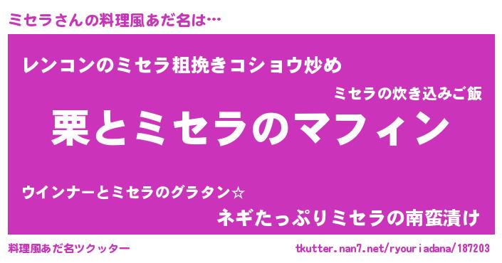 | 意味不明あだ名 | 『自称ミセラ』『ペロリンミセラ』 |