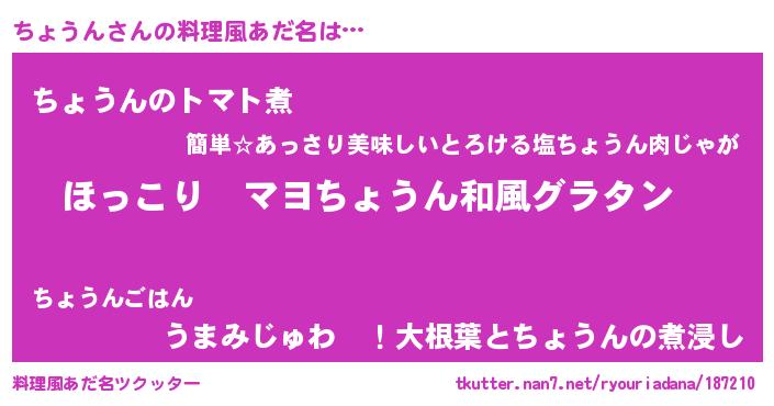 | ヘコむあだ名 | 『酢こんぶ』『ちょうん(苦笑)』 |