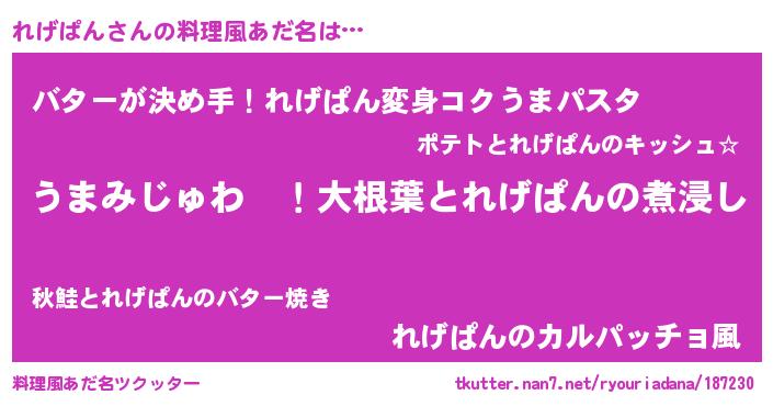 | 意味不明あだ名 | 『れげぱんフォーエバー』 |