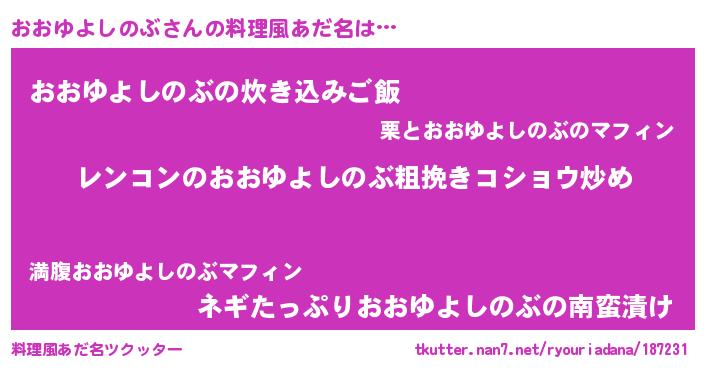 | 意味不明あだ名 | 『自称おおゆよしのぶ』 |