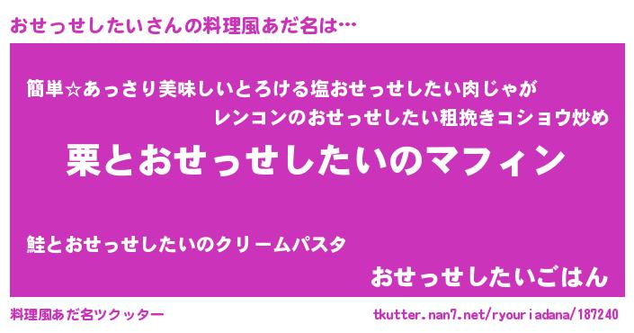 | ヘコむあだ名 | 『おせっせしたい(笑)』『おせにー』 |