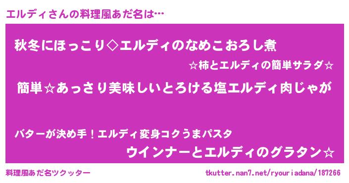 | 意味不明あだ名 | 『永久保存エルディ』 |