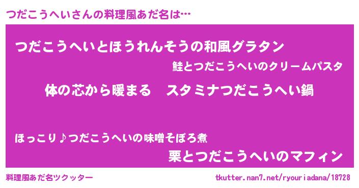 | 男性向けラノベタイトル風あだ名 | 『やはりつだこうへいの青春ラブコメはまちがっている 』 |