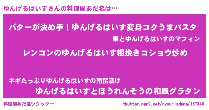 | 欧米人風あだ名 | 『ケンブリッジゆんげるはいす』 |