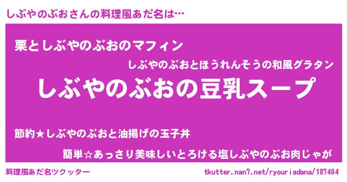 | 欧米人風あだ名 | 『ウサインしぶやのぶお』 |