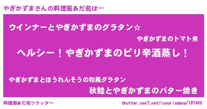 | 意味不明あだ名 | 『自称やぎかずま』『永久保存やぎかずま』 |