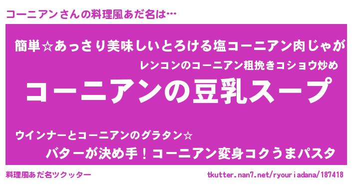 | 女子向けラノベタイトル風あだ名 | 『コーニアンは平凡を望む』 |