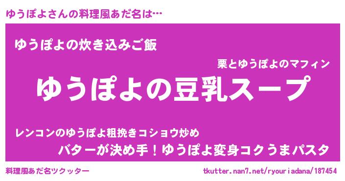 | 胡散臭い通販商品みたいなあだ名 | 『信頼と実績のサプリメント…その名も「ゆうぽよ」』 |