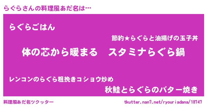 | 意味不明あだ名 | 『らぐらフォーエバー』『永久保存らぐら』 |