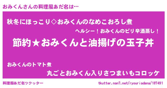 | 男性向けラノベタイトル風あだ名 | 『おみくんの憂鬱』 |