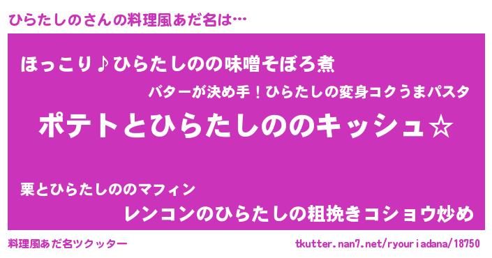 | ヒーロー風カッコイイあだ名 | 『幻影騎士ヒラ』『スーパーヒラタシノ』 |