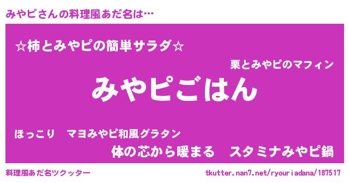 | 男性向けラノベタイトル風あだ名 | 『ミヤピスレイヤー』『緋弾のミヤピ』 |